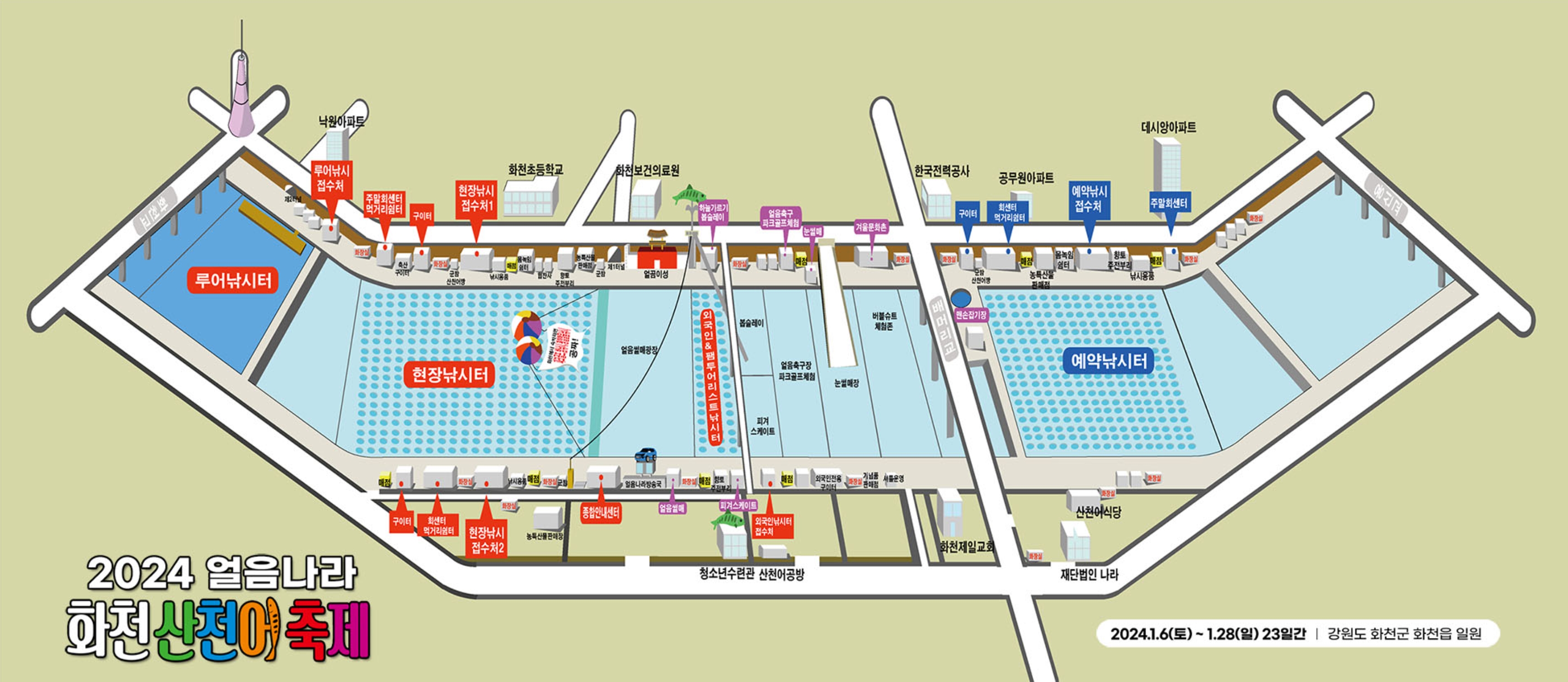 - 대표적인 국내 겨울 축제로 물고기 잡는 것을 메인으로 다양한 겨울 레포츠 행사와 야간 점등 거리